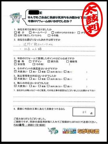 近所で施工しており、社長の人柄が決め手です。ありがとうございました。