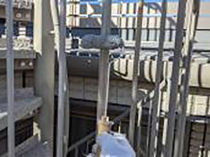 バルコニー樹脂マットを高圧ジェットで洗浄します。