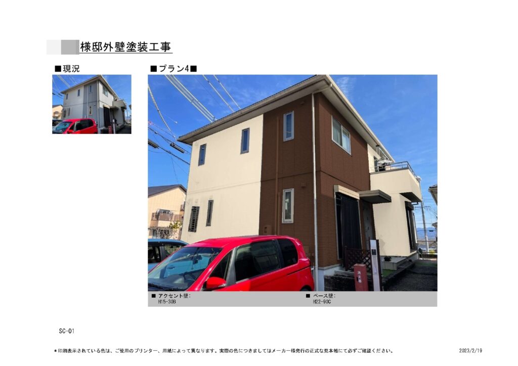 カラーシミュレーションは4パターンご提案させて頂きました。