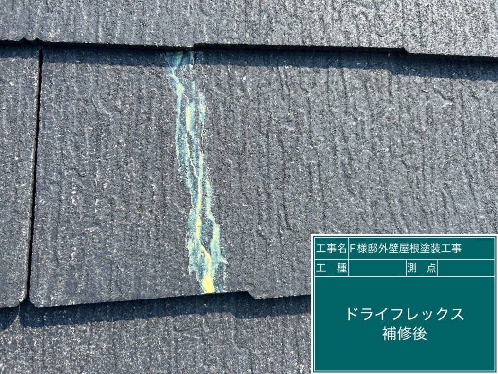 屋根のひび割れ部分をドライフレックスにて補修しました。