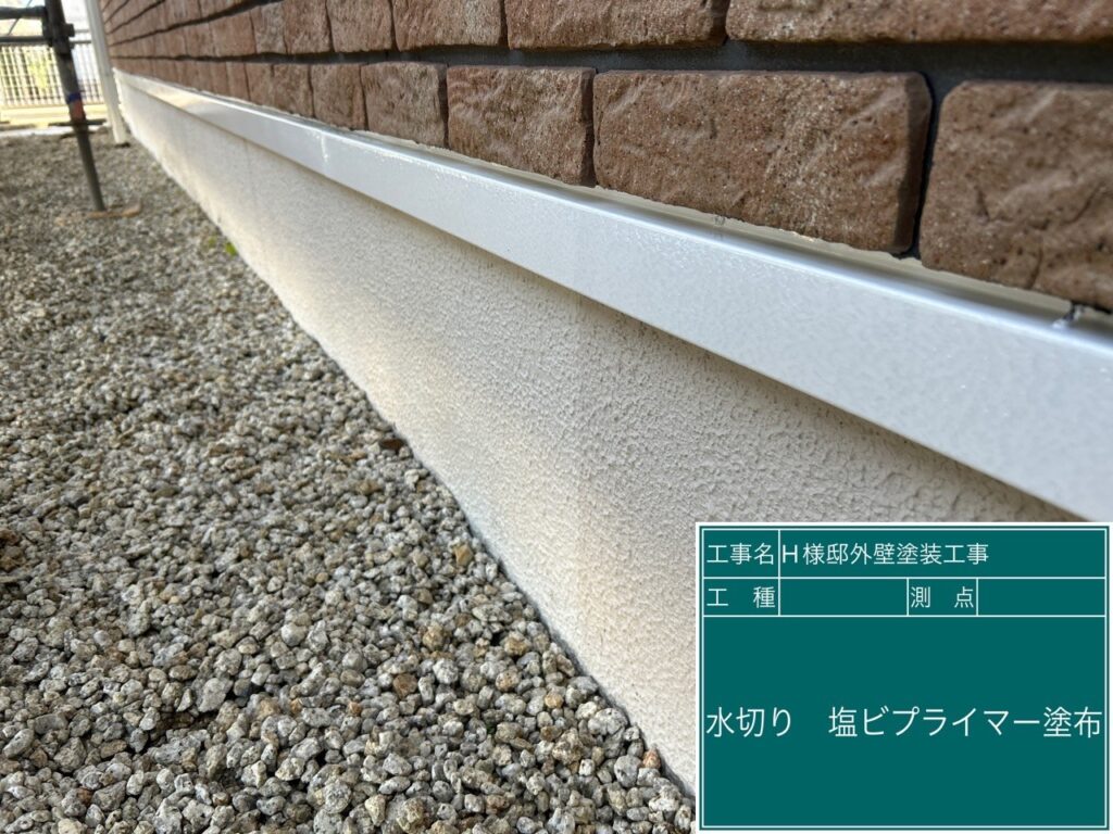 霧除けに塩ビプライマーを塗布します。