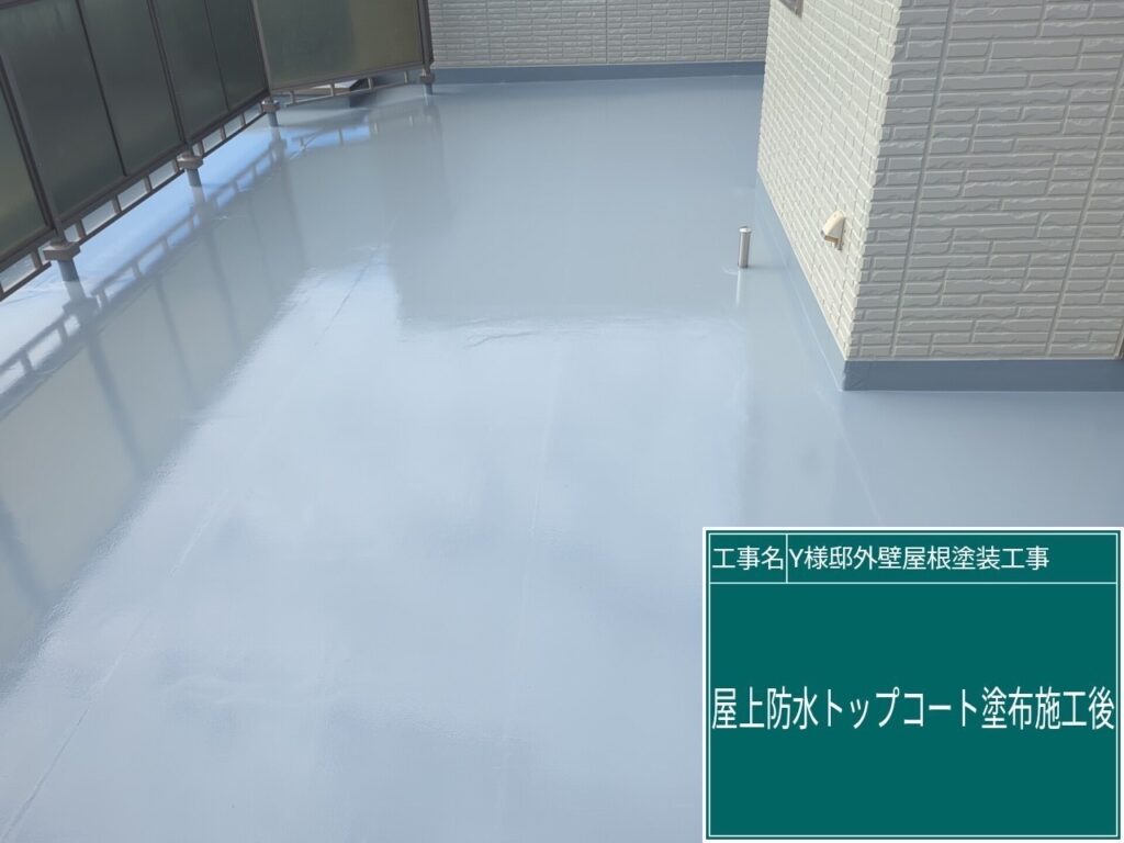 バルコニー床に仕上げ材の光触媒プロテクトコーティング(クリスタルシーズンtg)を塗布します。