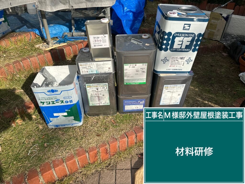 | 使用商材・建材 | 外壁 : 断熱無機ガイナ(特殊セラミック塗料/日進産業) 屋根: 断熱無機ガイナ(特殊セラミック塗料/日進産業) 付帯 : 4Fイージスガード(2液型弱溶剤/無機配合型4フッ化フッ素塗料/CPJ) 目地&開口部 : SRシールH100(超耐久・高耐候シーリング材/サンライズ) 仕上げ材:光触媒プロテクトコーティング/クリスタルシーズン® |
