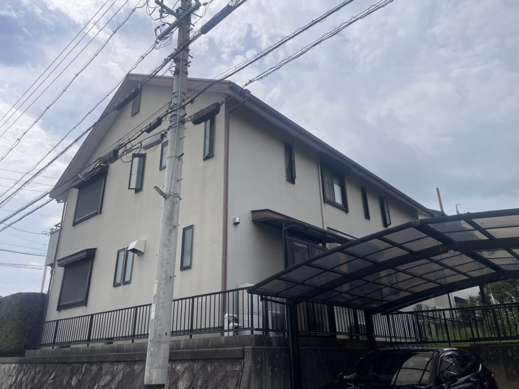 通気モルタル工法を採用した外壁です。色褪せが目立ちました。