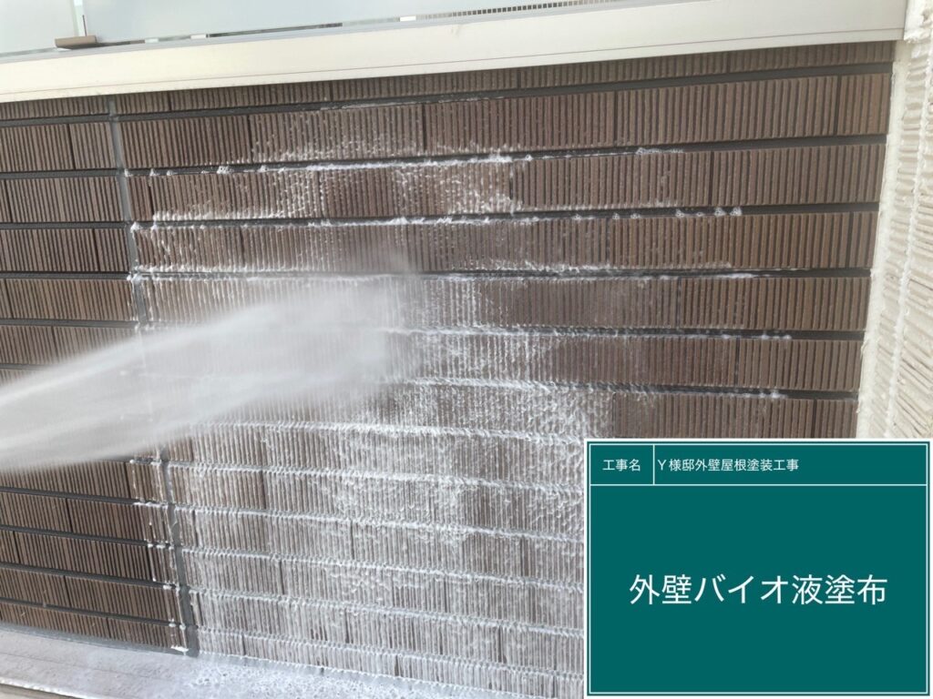 外壁部分に仕上げ材の光触媒プロテクトコーティング(クリスタルシーズンtg)を塗布します。